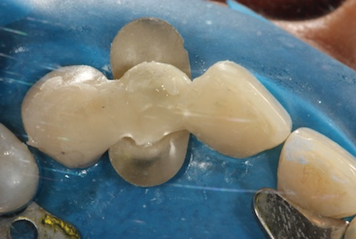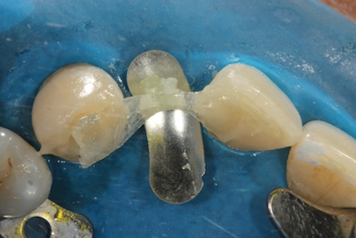 For any adhesive procedure, optimizing bond strength hinges on achieving proper isolation of the operating field. Placing a rubber dam ensures a pristine and fluid-free field, creating an ideal environment for both bonding and the subsequent development of the resin bridge (Figure 3). Achieving complete isolation is particularly important in cases involving replacement of a missing tooth immediately after extraction or implant placement.