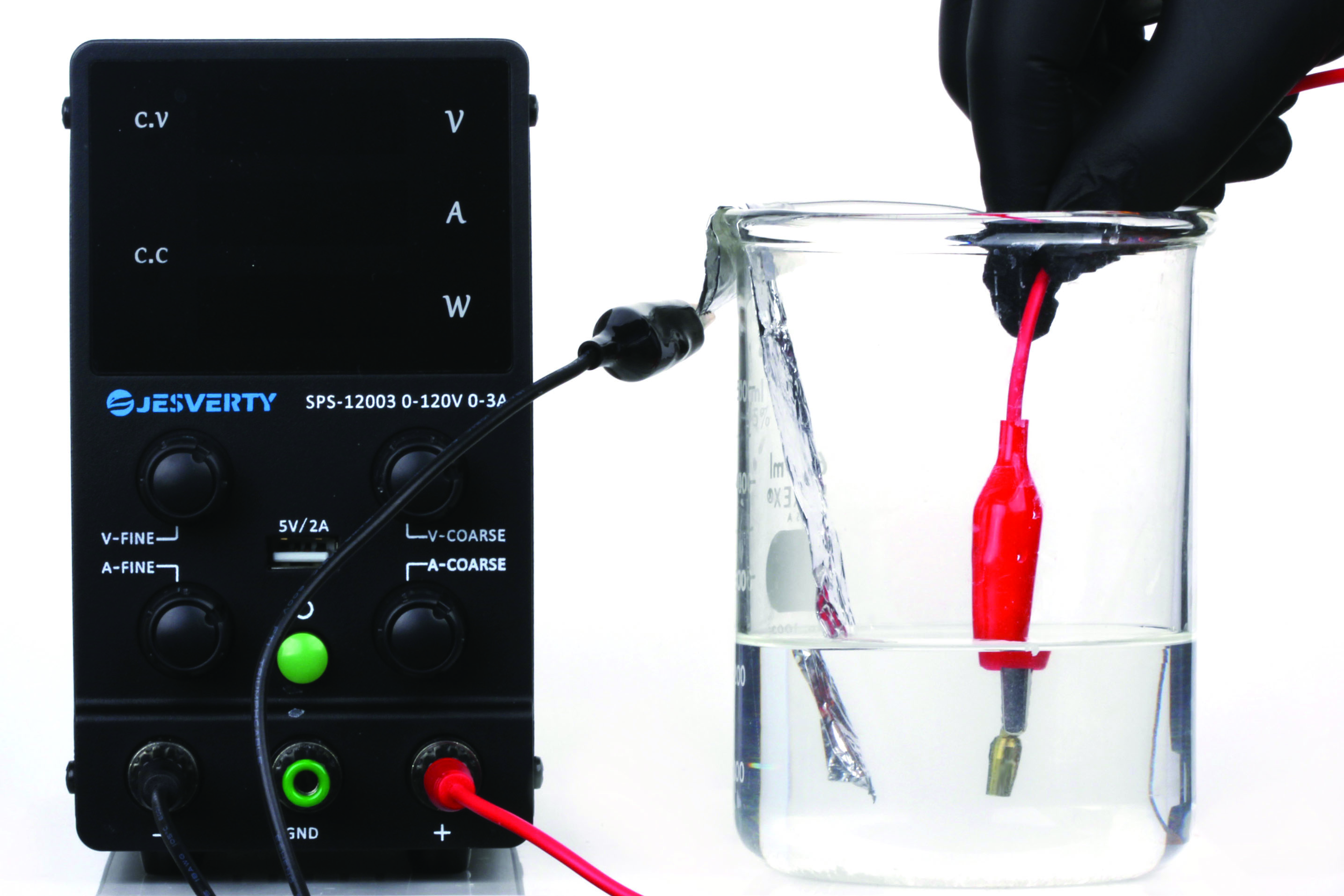 To anodize an implant abutment, the negative terminal of the power supply is attached to a 3 cm x 6 cm piece of aluminum foil, which is submerged into the electrolytic solution (in an approximately 250 mL container). The positive terminal is connected to the clean titanium abutment, which is then submerged into the electrolytic solution. Complete anodization occurs in 10 to 20 seconds. Even small voltages can cause electrical shock; therefore, the terminal leads (negative and positive) should not be touched when the power supply is on, and appropriate insulation, such as rubber gloves, must be worn throughout the process.15