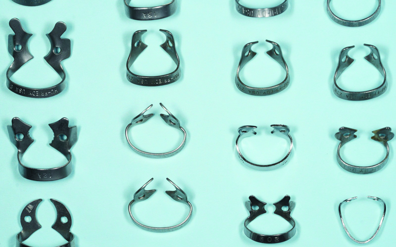 The MGRI protocol begins with the microscopic selection of the correct size and form of the appropriate clamp for securing the dental dam, as well as the subsequent placement of the clamp. Using a DOM is helpful in selecting the most suitable clamp and aids in ensuring accurate and optimal adaptation of the clamp to the tooth structure, setting the foundation for effective isolation. While no clamp kit can fully address the variety of clinical situations encountered in daily practice, it is crucial for clinicians to understand the specific function, strengths, and limitations of various clamps.9 The main parts of a dental clamp are the bracket, anchorage points or tips, and lateral wings (Figure 1).
