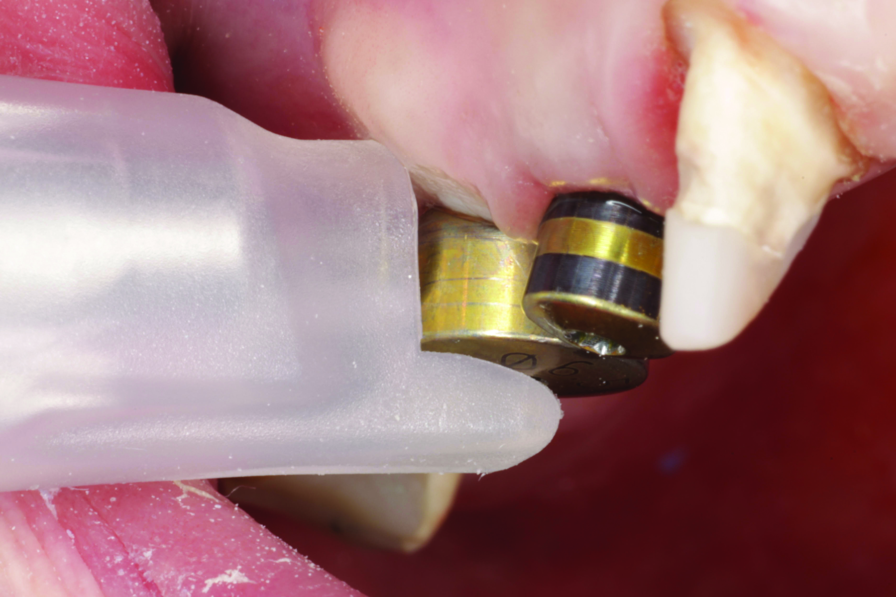 Other methods employed to evaluate the stability of implant sites include dual-energy x-ray absorptiometry (DEXA) scans, simply tapping on the implant, removal torque, and resonance frequency analysis (RFA); however, each of these approaches has limitations. A DEXA scan is impractical for routine dental implant monitoring due to its costly and time-consuming nature and relatively high radiation dose.4 Tapping on an implant has limited clinical value because it is not quantifiable and introduces a high degree of subjectivity. Removal torque involves calculating the amount of force required to remove an implant from its site. Typically, implants with a high removal torque value are more stable. However, removal torque testing can be problematic outside of research settings because it may compromise the bone-to-implant interface.5 RFA, conversely, cannot harm an implant or its surrounding tissue.6 It also provides quantifiable data. However, the implant stability quotient (ISQ) values provided by RFA do not have a universally accepted correlation to stability. Therefore, it requires clinical judgement and interpretation.