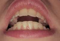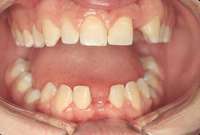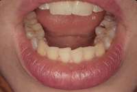 | Figure 1 The patient presented with two missing mandibular central incisors, after completing orthodontic treatment. |