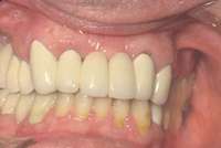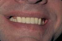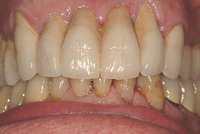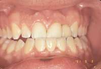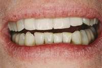 The mandibular central incisor emerges from its alveolus at 22° from vertical, the lateral incisor at 23°, and the canine at 12°.13(p228) All three teeth have the potential to function against the lingual inclines of the maxillary anterior teeth in horizontal glide movements of the mandible. In the “normal” occlusion and most therapeutic occlusal concepts, this contact results in a functional outer aspect similar to that of posterior teeth. This functional pattern defines the mandibular anterior incisal edge into a directly visible part of these teeth.13(p238) Should functional wear/attrition continue, the appearance of the mandibular anterior incisal edge may change in outline form, but it remains a constant to the observer. The display of mandibular anterior incisal edges during speech and other functional activity is an essential component of the functionally oriented, observer’s perspective, which Abrams termed “the view.”12