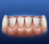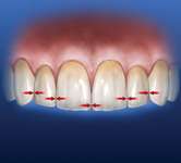 Restorations that respect correct anatomic principles are simpler to make and better harmonize with the natural dentition (Figure 16 through Figure 19). The youthful human maxillary anterior dentition displays incisal embrasures on the labial aspect of all teeth. These embrasures are defined by the most incisal extent of the proximal contact point and deepen gingivally from the midline posteriorly. So, the gingival incisal embrasure between the central incisors is more incisally located than the incisal embrasure between a central and a lateral, which is more incisal than the incisal embrasure between a lateral and a canine, etc (Figure 20).