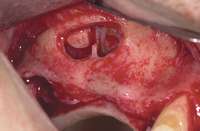 These cells originate from the epithelial gingival tissue, the lamina propria of connective tissue, the bone, and the periodontal ligament.23 Thus, with the use of a membrane, cells derived from bone will have the potential to regenerate the lost bone volume within the sinus in the posterior maxilla. The most commonly placed membranes are resorbable (collagen membranes) rather than nonresorbable (expanded polytetrafluoroethelyne [e-PTFE]).