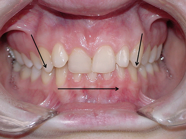 Generally with problems related to growth and development, such as bottle feeding, mouth breathing, tonsils, adenoids, and tongue thrusting,10 the maxilla shows a deep palatal vault and a V shape indicative of an unexpanded maxilla (Figure 1). All of these problems affect the maxilla, which then affects the way the mandible fits within its confines. This is similar to the maxilla acting as a “fence” or corral in which the mandibular teeth are the sheep. If the maxilla is constricted, then the mandibular teeth will crowd to accommodate to the space allowed by the maxillary teeth. The occlusal fencing concept is based on a structural maxillo-mandibular concept rather than a dental concept of occlusion. It takes into account 3-dimensional positioning in space.