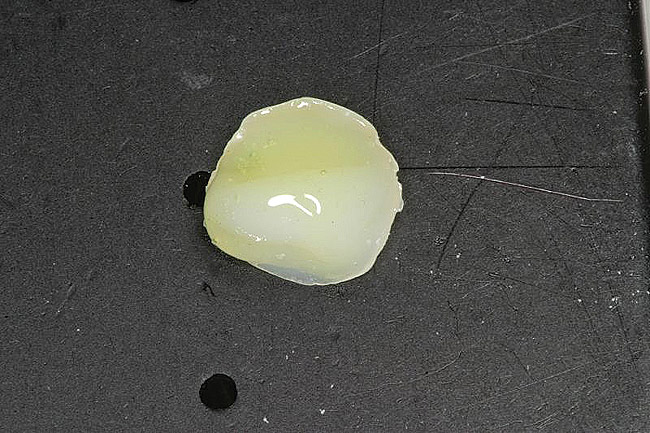 To fabricate the posterior restorations, a clear silicone impression tray— fabricated from the diagnostic wax-up—was used (Figure 19). The tray would be filled with composite resin and placed over the silicone die material. To make the composite resin more flowable, a Calset™ composite heater (AdDent, Danbury, CT) was used. The composite was injected into the clear matrix and placed on the silicone die material (Figure 20 and Figure 21). The clear impression tray was seated over the silicone die material and light-cured for 40 seconds. The tray was removed and the restorations are shown on the silicone die (Figure 22). These restorations were then separated, finished, polished, and were ready to be bonded on the posterior teeth.