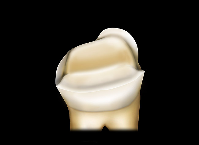 The long-term success of metal posterior restorations has been established.2-4 The minimal thickness required to achieve sufficient material strength allows conservative preparation design and, therefore, less risk of pulpal compromise. Though resistance and retention form are required in the preparation design for metal restorations, the mechanical requirements can typically be met with less tooth reduction than is required for metal-ceramic or all-ceramic cohesively retained restorations.