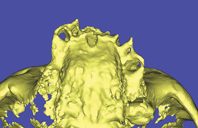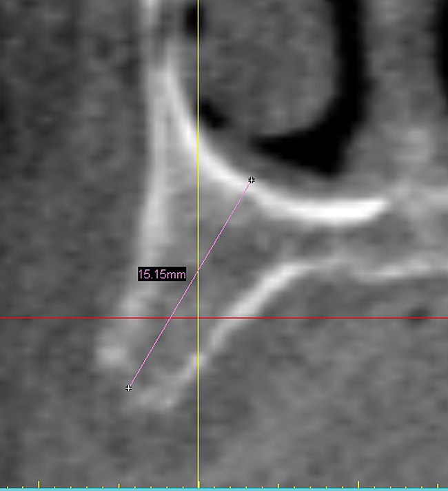 An interactive CBCT scan offers a 3D view that allows visualization of a ridge defect with lifelike reality. In the maxillary arch, a CBCT scan shows the anatomy of the maxillary sinus with regard to pathology and available bone for dental implant placement. In the mandible, the inferior alveolar nerve can be traced and measured. A CBCT scan also shows the density of surrounding bone before grafting. This can indicate a need for grafting for improved mineralization and volume. A CBCT scan also offers the advantage of reduced radiation exposure over a fan-beam traditional CT scan.