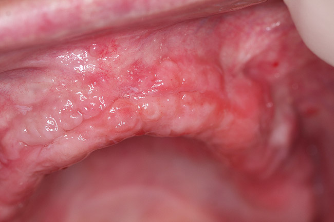 Soft Tissue Closure: Through obtaining closure of soft tissue over a graft site, the graft is better maintained, has reduced invasion of debris, and has better vascularity. Various tissue-releasing techniques are available that allow proper flap closure. One technique includes carefully scoring the periosteum and stretching the flap.17 Sometimes connective tissue grafts can be added during a hard tissue graft to improve keratinization of the surrounding tissue and assist with closure. Proper suturing techniques also assist in maintaining closure. The key is to have the tissue cover the graft in a flaccid manner before suturing, thus allowing the sutures to gently keep closure. With putty DFDBA materials, it is easy to overbulk the graft site because of its rigidity. This overbulking can make closure more difficult and technique-sensitive.