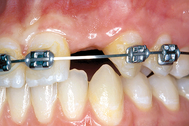 A 17-year-old boy presented with a history of congenitally missing maxillary lateral incisors. The patient had been under the care of an orthodontist for several years to manage his occlusion during his adolescent growth phase. The patient originally presented with his parents after being told that the “braces were ready to be removed, and their son was now ready for implants to replace the missing teeth.” This is not an uncommon circumstance, and unfortunately the orthodontic alignment was performed before the patient was sent to the restoring dentist. Therefore, the orthodontist was not aware of the space requirements for future implant placement. This case highlights the importance of proper communication between all members of the implant team, especially during the orthodontic planning phase. The patient’s medical history was unremarkable, and the patient was found to be healthy and a good potential candidate for dental implants to replace the missing lateral incisors.