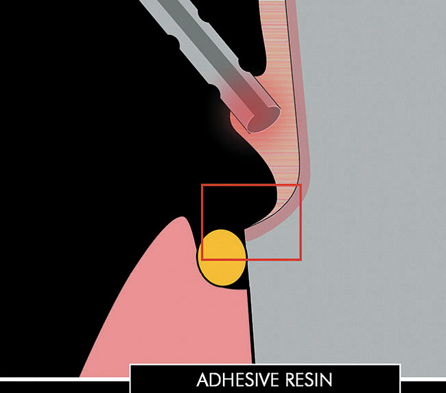 - i>Maximum tooth structure preservation. When used on full-crown coverage preparations and combined with glass ionomer or modified-resin cements, IDS can result in significantly increased retention, exceeding the cohesive strength of the tooth.29 IDS can therefore constitute a useful tool for improving retention when dealing with short clinical crowns and excessively tapered preparations. Provided that optimal adhesion is achieved also at the inner restoration surface (eg, porcelain etching and silanization, as in the case of inlays, onlays, and veneers), traditional principles of tooth preparation can be omitted and significantly more conservative tooth structure removal is enabled (Figure 1).30