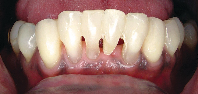 The clinical success of adhesive composite-resin restorations has changed the way that dentists treatment plan and treat periodontally mobile teeth. While adhesive composite resin provides for strong, durable, and esthetic single-tooth restorations, when placed to join teeth together, these materials—which are chemically brittle by nature—are susceptible to fracture and are not durable. When supporting pontics or stabilizing mobile teeth, cracks within the connector areas lead to outright fracture; therefore, splinting teeth as part of fixed prosthodontic provisionalization also creates challenges when the temporary restoration must function over longer periods of time.