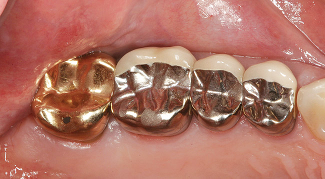 A middle-aged woman presented with the chief concern of seven existing full-coverage restorations that required replacement because of recurrent decay and compromised margins (Figure 2');" rel="imagepop" rem="#ip:figure1 and Figure 2">Figure 1 and Figure 2). She underwent an oral examination and medical history review, after which it was concluded that she had no medical or dental contraindications to treatment. The teeth to be replaced were the upper left bicuspids and first and second molars, and the lower second bicuspid and first and second molars. It was decided that these new restorations would be fabricated in-office with the author's chairside CAD/CAM restorative system (CEREC® 3D, Sirona Dental Systems Inc, Charlotte, NC).