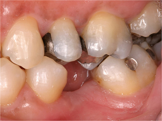 The conservative resin-bonded winged FPD approach (also known as the Maryland Bridge) presents with it the attractive option of biological conservation of tooth structure (Figure 3). This appeal is significant, warranting serious consideration for this treatment approach.6,7 Unfortunately, as appealing as it is, the long-term functionality of this option has proved to be less than ideal. Other problems related to this treatment modality include discoloration of retainer/support teeth due to the metal wing, debonding, and removal of lingual tooth structure to accommodate the wing retainers.8