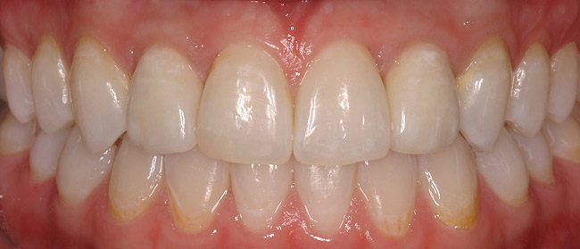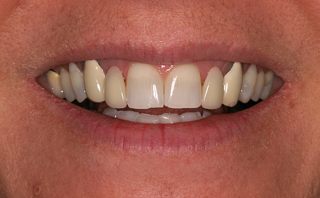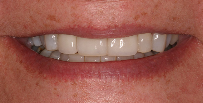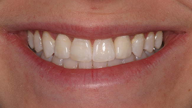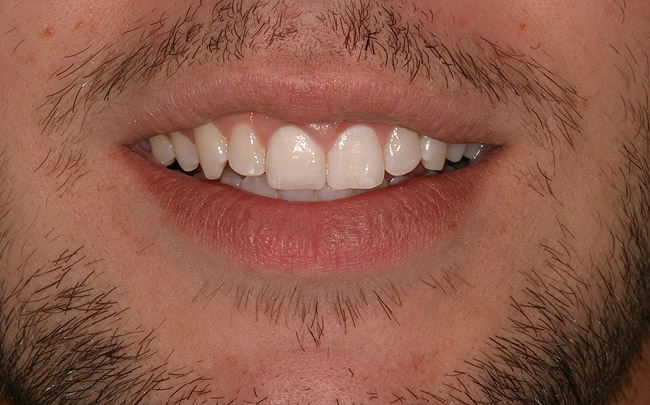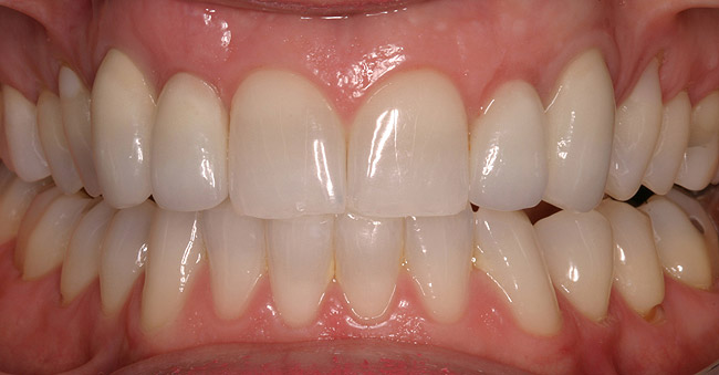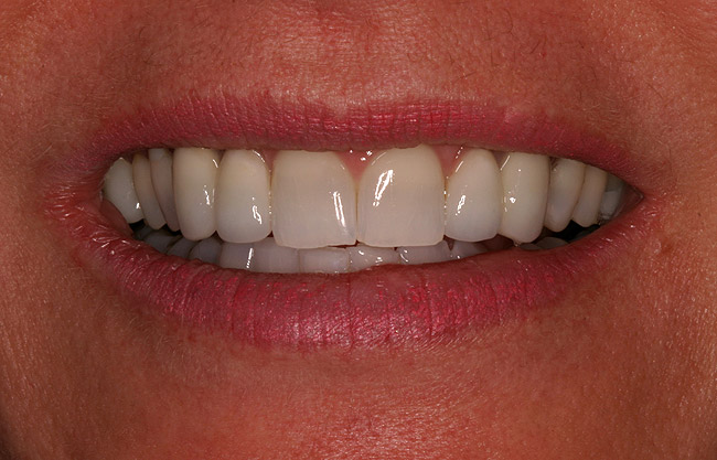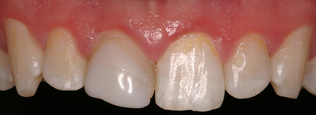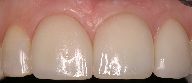 When a patient presents with a missing anterior tooth and heavily treated adjacent teeth, although conceptually an FPD option may seem the most appropriate choice, it can be argued that it would not be the most favorable option. If long-term treatment outcome is a strong motivator for the patient, then a treatment plan that includes individual restored units would be the more appropriate choice. Consequently, the patient would most likely have improved benefit with a single implant-supported restoration and treating the adjacent teeth as separate, single units (Figure 7).