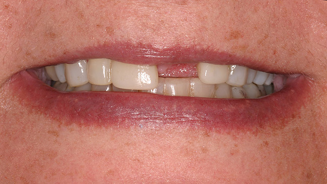 Depending on the patient’s treatment objectives, this option is rarely viewed as a long-term solution to the problem at hand. However, as an interim short-term tooth replacement option, this treatment modality may prove to be a useful solution allowing the patient the necessary time to prepare both financially and/or psychologically for a more definitive treatment solution (Figure 2).