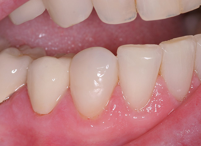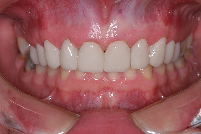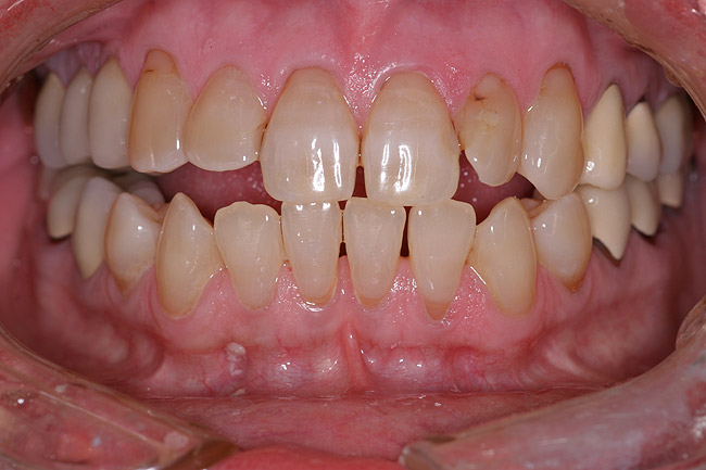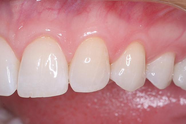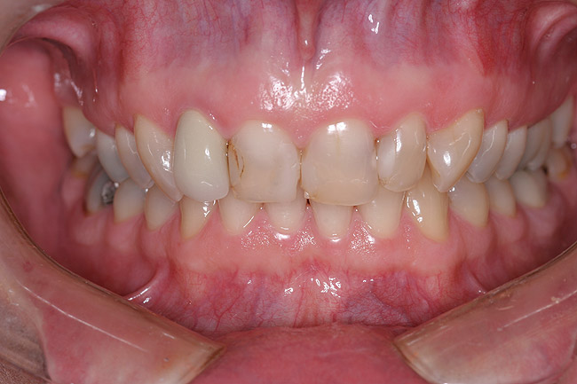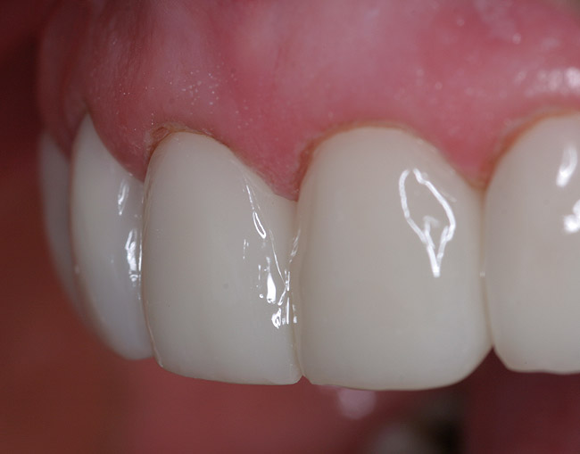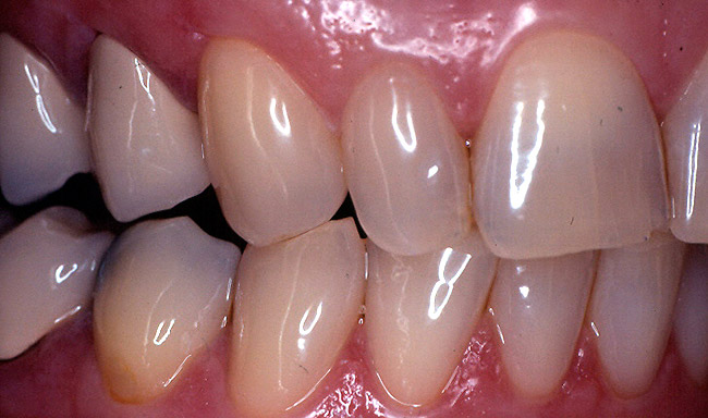 At this point, patient education became critical. Success in dentistry can only occur when a patient takes ownership of their situation and is committed to an outcome. At the initial visit, the broken incisal edge of the lateral was restored. However, it was clearly explained to the patient that the underlying cause of the failures was still present and that this deficiency would result in another restorative failure if it was not properly addressed.