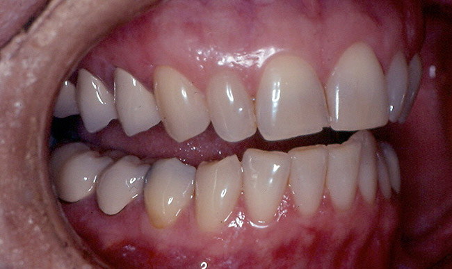 When restoration becomes necessary, it is also important to recognize functional patterns. A person who often moves their mandible horizontally and can protrude with little difficulty will exhibit flat, worn anterior teeth. And as the anterior wear continues, the posterior teeth will also begin to lose their anatomy. The other spectrum would include patients who wear their teeth with a vertical bias. These patients would have the wear confined to just their anterior teeth. The anterior incisors are often greatly affected, with little wear beyond the canine teeth. Vertical-pattern patients will often have difficulty moving their mandible laterally, while horizontal-pattern patients can freely move in any direction.