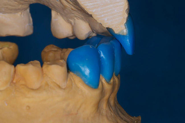 The foundation of the rehabilitation is accurate casts. This is not limited to impressions of prepared teeth; just as important are the preoperative casts. They will be used in the diagnostic waxing and provisional matrix fabrication. Replicating occlusal detail on subjects with aggressively worn teeth and damaged restorations can be a challenge. Casts with occlusal distortions, missing information, or that are poorly poured will lead to mounting and waxing errors. Provisionals will be produced that cannot mimic the features of the laboratory product. Rudd13 outlined the keys for successful alginate (Integra, Kerr Corporation, www.kerrdental.com impressioning and cast fabrication. A review of these guidelines is recommended. Alginate substitutes (such as AlgiNot and AlgiNot FS, Kerr Corporation; Counter-Fit™, Clinician’s Choice Dental Products, Inc, www.clinicianschoice.com; Position™ Penta™ Quick, 3M ESPE, www.3mespe.com) are equally accurate when used correctly.