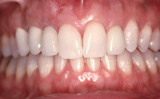 To develop an optimal treatment plan the clinician must envision the completed dental rehabilitation. In this regard, factors that contribute to achieving a cosmetic result in the esthetic zone include: smile line, midline, tissue level, height, width, and position of teeth. The smile line is considered high if there is exposure of the teeth and gingiva.4 It is judged average when 75% to 100% of the maxillary incisors are displayed and low if < 75% of the teeth are seen.4 It is more difficult to achieve an optimal esthetic result when there is a high smile line because discrepancies in tooth and gingival or papillary height are visible.