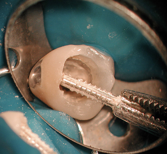 Many re-treatments are performed because periapical pathology develops or persists after routine root canal therapy. It has been shown that the presence of bacteria within the root canal system at the time of obturation has a negative influence on the endodontic outcome.3 After biomechanical cleaning, bacteria may persist not only within the root canal system but also in the apical regions of roots, at the apical foramen, or within a periapical lesion, which leads to endodontic failure.4,5 The presence of bacteria in the periapical tissue does not imply periapical infection. The occurrence of bacteria in the periradicular tissue depends on a critical amount of bacteria within the root canal.6 In necrotic teeth with periapical pathology, bacterial flora become more complex, containing different species and a larger number of bacteria. Eliminating these microorganisms and healing become more difficult.