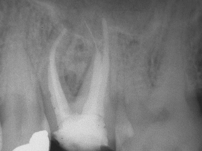 The incidence of periapical cysts among all inflammatory periapical lesions is approximately 15% to 20%.10-12 Pocket cysts are connected to the root apex and the root canal; true cysts are separate and not attached. Neither type of cyst can be diagnosed clinically.10,12 Other than periapical granuloma or pocket cysts, true cysts, extraradicular infections, reaction to foreign bodies, or residual cholesterol crystals might not heal after conventional treatment. In that instance, surgery is indicated.3,10