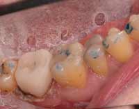 The computerized analysis showed that even with very light articulating paper markings there were excessive forces being placed on the area around tooth No. 31. The 3D graph showed the exact area that needed to be adjusted for this discrepancy. Because this area of concern was previously undetectable with articulating paper alone, it may be the cause of the initial failure of the patient’s tooth. The new all-ceramic crown placed after using T-Scan III analysis and adjusting the occlusion based on the finding solved this problem. Whereas the original restoration fractured within 1 month, the subsequent replacement, as of this writing, has lasted for more than 2 years without failure.