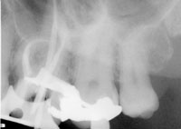 Figure 1 Preoperative radiograph demonstrating complex anatomy. | Figure 2 An approximate working-length radiograph. |