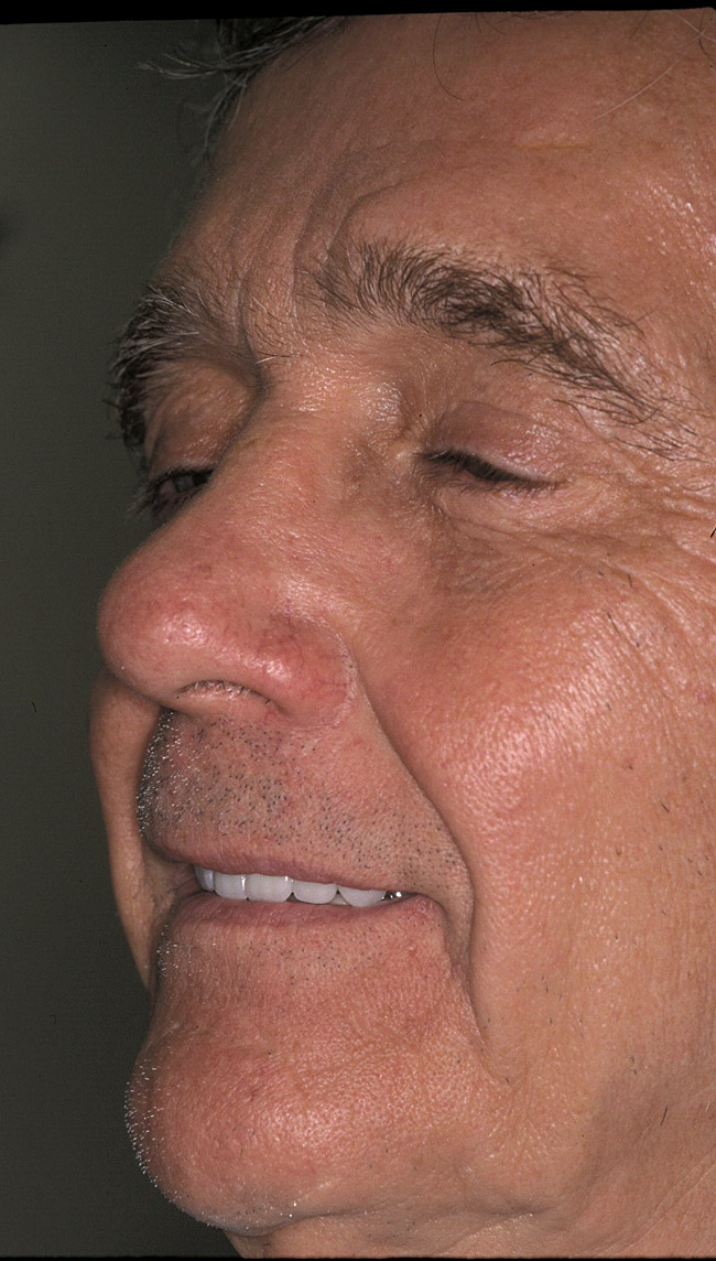 The sequelae of tooth loss and an edentulous arch is residual ridge resorption both in the horizontal and vertical direction. This ongoing loss of hard and soft tissue is most noticeable in the loss of orofacial support: facial esthetics, phonetics, and collapse of vertical dimension. This leads to an aging appearance due to the lack of lip support and decreased facial height (Figure 1 and Figure 2). Concurrent with these changes in facial structures are impaired oral function, pain, insufficient retention, and instability of conventional dentures, as well as nutritional and psychological changes. Many patients seeking resolution to chronic soreness of load-bearing tissues and nonstable or retentive dentures will enjoy increased esthetics, function, comfort, and psychological benefits from implant overdentures, without the need for more extensive fixed restorations.8,9