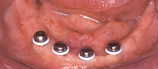While most implant-based treatment has historically focused on fixed prosthetic tooth replacement,1 the multitude of benefits to the edentulous population from implant overdentures is overwhelming in improved function, emotional stability, physical health, and esthetics. Proper evaluation and treatment planning of the fully edentulous patient has been shown to result in an improved quality of life for patients2,3 and predictable clinical success. The indication for a fixed prosthesis may be limited because of inadequate quantity and structure of the bone. Enhancement of esthetic appearance and facial morphology through replacement of lost hard and soft tissues may be proven easier, if not more effective, with removable overdentures than with conventional fixed prosthesis, with possibly decreased costs and less surgical intervention.
