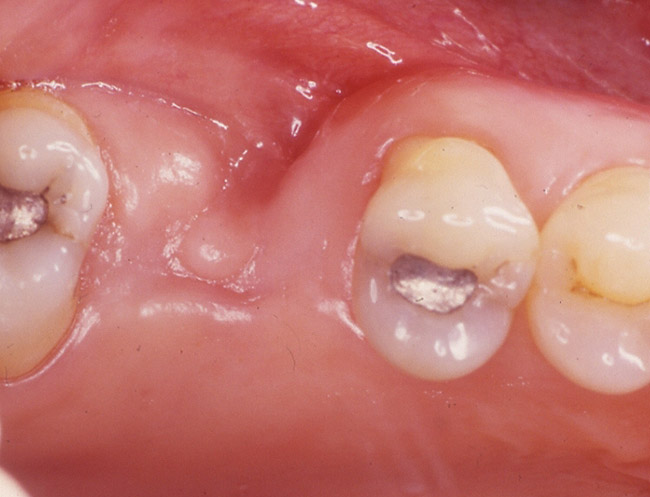 Pietrokovski8 investigated the type of bone that was formed in extraction sockets by histological investigation of 120 dry, human skulls that had teeth missing for at least 3 months. The study indicated that the extraction sockets were filled by dense trabecular bone, which was thicker and denser than the rest of the trabecular bone that had formed in the inner portion of the alveolar process, but less dense than the cortical plates of the jaw. Thus, a distinct porosity was noted at the crest of the residual ridge compared with the adjacent bone. Furthermore, changes in ridge shape were noted. From the occlusal aspect, the crest of the residual ridge had shifted lingually when compared with the original position of the teeth before extractions. From the lateral aspect, the residual ridge often formed a concavity between the alveolar crests of adjacent remaining teeth that was more pronounced when more than one tooth was missing.