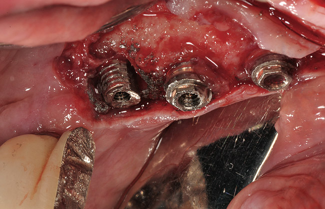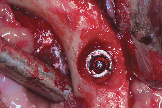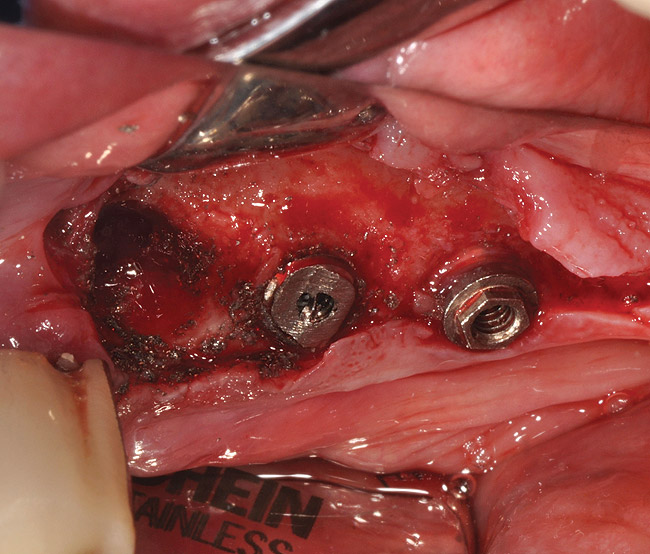 After removing a failed implant, the placement of an immediate replacement implant is often dependent on the amount of residual bone. Several authors have stated that guided bone regeneration (GBR) procedures are unnecessary for four-wall socket sites with no fenestrations or dehiscences and a gap distance < 2 mm between implant surface and surrounding bone walls.12,31 However, if the implant socket site contains less than three walls, use of the GBR procedure as well as knowledge of the classification of the extraction socket type is helpful in treatment-planning the augmentation of the bony defect.32 In any event, preservation of the bone during removal of the implant can help avoid or reduce the necessity of augmentation procedures to promote implant placement. This is essential because the literature suggests that replanted implants may have a decreased survival rate.33