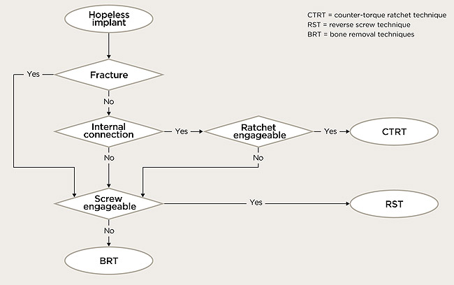The technique selected depends on the specific clinical situation. A decision tree for implant removal is presented in Figure 14.