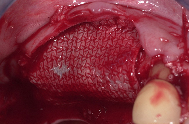 The use of a barrier membrane over the lateral window has been shown to improve the success rate of implant survival in the grafted sinus.21 Moreover, the understanding of how a barrier creates space for selective cell repopulation gave rise to the concept of epithelial exclusion to restore lost periodontal tissue as well as guided bone regeneration. This is because of the variability in the types of periodontal tissues repopulating the area during healing. Melcher, in 1976, suggested that there are four different cell types dictating the type of periodontal healing that will occur. These cells originate from the epithelial gingival tissue, the lamina propria of connective tissue, the bone, and the periodontal ligament.23 Thus, with the use of a membrane, cells derived from bone will have the potential to regenerate the lost bone volume within the sinus in the posterior maxilla. The most commonly placed membranes are resorbable (collagen membranes) rather than nonresorbable (expanded polytetrafluoroethylene [e-PTFE]).
