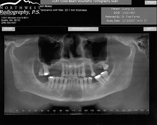 3. examine the site radiographically via a panoramic film and/or computed tomography scan. This will determine the required volume of bone along with detecting pathologies and abnormalities directly or indirectly affecting the maxillary sinus.
