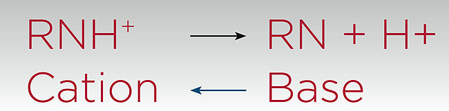 The amount of base or cation available through the dissociation of the local anesthesia will have a direct effect on the ability for the local anesthetic solution to clinically achieve profound anesthesia for the patient. The dissociation of local anesthesia and the relative proportions of each form (cation and base), therefore, are dependent on the pH of the anesthetic solution and surrounding tissues. If a high pH (fewer H+ ions) exists, the chemical reaction is driven to the right (Figure 1), thus providing more base than cation to penetrate the nerve sheath. If a low pH (more H+ ions) exists, the chemical dissociation is driven to the left (Figure 1) and, therefore, more cation than base will be available and, hence, the local anesthetic solution will have more impedance in penetrating the nerve sheath.4