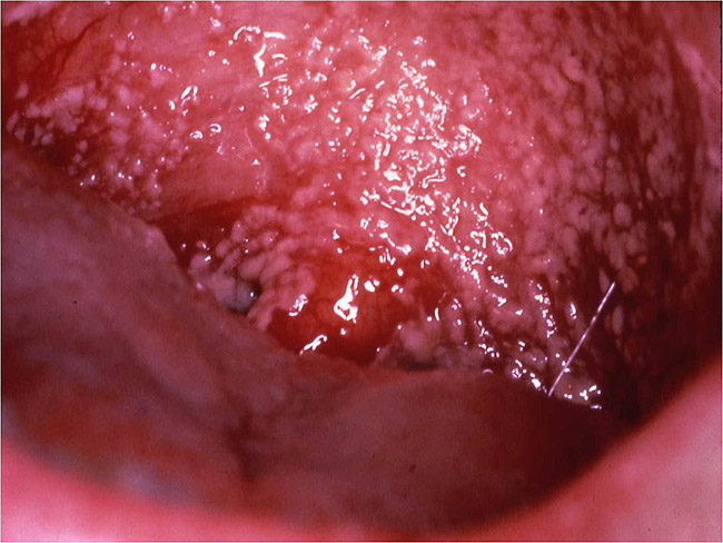 Graft-versus-host disease (GVHD) can occur in a patient (the host) who receives a bone marrow or hematopoietic stem cell transplant (the graft). The new immune system actually attacks the patient; essentially, the “graft” tries to eliminate the foreign tissue of the “host.” This can appear on the oral mucosa as a mild lichenoid reaction (white plaques) or be very serious with erosive, or ulcerative, lesions. If GVHD occurs in the first 100 days after the transplant, the condition is considered acute and may need to be treated with antirejection drugs such as cyclosporine or corticosteroids. Occurrence of GVHD after the 100-day mark, is called chronic13 (Figure 2).