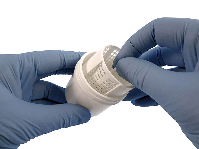 Additionally, researchers recommend against touching the root surface of an avulsed tooth in categories 1 through 6; crushing damage to the root PDL cells of an avulsed tooth has been shown to cause severe root resorption after reimplantation.28 Atraumatically retrieving an avulsed tooth from a transportation container is more troublesome than most practitioners realize. As can be seen in Figure 2, dirt on an avulsed tooth picked up from an accident site could make the storage medium murky, milk is naturally opaque, and containers may have very small openings. All of these factors make retrieving the avulsed tooth very difficult and may cause crushing of the root PDL cells as the dentist struggles with fingers or forceps to grasp the avulsed tooth. The optimal storage device should possess a removable basket that permits atraumatic transport, washing of debris, and atraumatic retrieval of the avulsed tooth (Figure 3, Figure 4 and Figure 5) while additionally permitting the preservation of the HBSS for additional use during reimplantation if socket modification is necessary. The use of optimal storage devices is now considered the standard of care and is recommended for use by dentists, ambulance services, emergency rooms, and at home by most textbooks.11,26