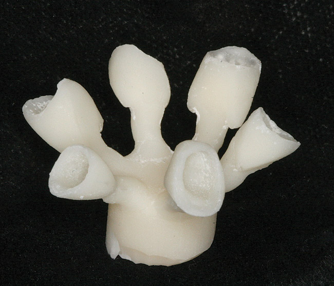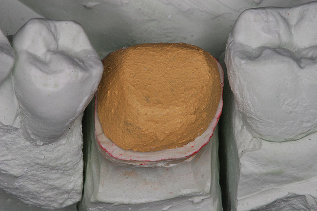 The slip-casting fabrication method was introduced in the 1990s. This processing technique involves the creation of a porous core by slip casting, which is sintered and then infiltrated with a lanthanum-based glass, producing two interpenetrating continuous networks: a glassy phase and a crystalline infrastructure. The crystalline infrastructure could be alumina (Al2O3), spinel (MgAl2O4), or zirconia-alumina (12 Ce-TZP-Al2O3).9 Restorations produced through this method tend to have fewer defects from processing and have greater strength than conventional feldspathic porcelain.10
