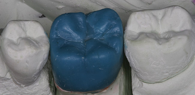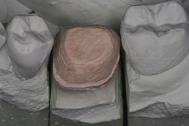 Hot-pressed ceramics have high amounts of leucite crystals and are considered leucite-reinforced glass ceramics. During the heated injection molding cycle, the sintering process is avoided22 and the leucite crystals act as barriers that counteract the increase in tensile stresses that can lead to the formation of microcracks.21,23 This type of ceramic can be used to press as an all-ceramic restoration or to a metal coping (Figure 12 through Figure 15).