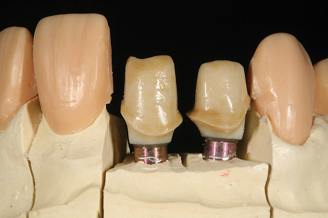 Similarly, in the past decade implant technology has steadily developed and become more predictable. The relationships among implant position, bone levels, and gingival response have become much more clearly understood, resulting in an explosion of implant placements requiring restoration.9-11 Abutment selection for implants has evolved from cast gold and prefabricated titanium, to zirconia or hybrid zirconia and titanium. Now, lithium-disilicate abutments with titanium bases also are being used.