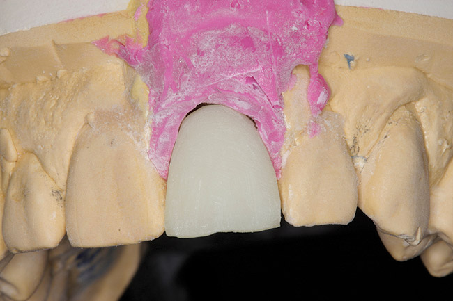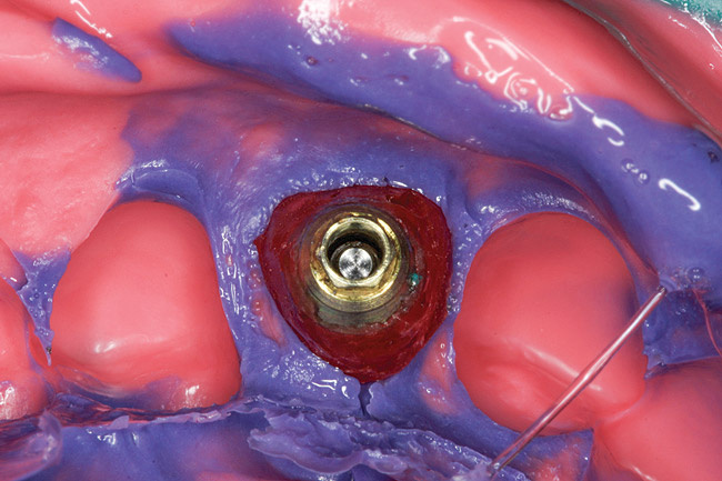 Once the implant is finally placed, the responsibilities shift to one of the above scenarios. If the implant can be loaded at the time of placement, it then becomes an immediate placement/immediate load case, and a screw-retained provisional is fabricated as above. If it is placed and cannot be loaded, the scenario then changes to immediate placement/delayed loading, in which case the custom healing abutment is fabricated and the previously described protocol is followed through delivery.