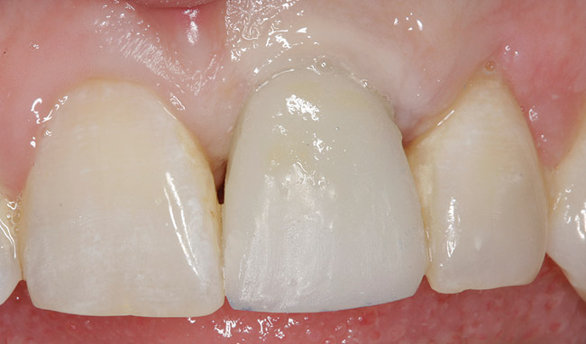 Restorative responsibilities unique to this scenario revolve around the provisionals. Depending on the amount and the nature of the grafting, a different provisional will be indicated. If multiple surgeries are necessary to augment the surrounding tissues, bonded type bridges become maintenance liabilities. A fixed conventional provisional is ideal if the adjacent teeth need to be restored. A variety of removable prostheses would also work—including a flipper, an Essex retainer with a denture tooth, and a snap-on appliance such as Snap-On Smile® (DenMat Holdings, LLC, www.denmat.com), to name several.