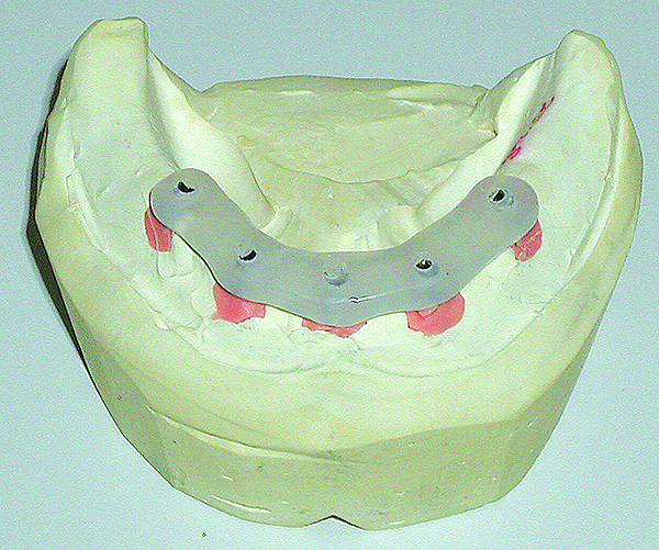 The unique approach the described system applies to implant-supported full denture treatment affords the dentist many advantages over other methods. Most notably is the degree of retention that can be achieved, which has been shown to be comparable to that of other attachment systems4 and is the greatest in this author’s over 20-year experience with implant-supported prostheses. It also is easier for patients to clean freestanding implant abutments than those connected by a bar, thus improving their ability to perform oral hygiene procedures. In addition, because the bar is contained within the denture base, the possibility of its corroding in the mouth is virtually eliminated.5 For the laboratory technician, the procedures involved using this system are simpler and more easily performed than those involving bars that are milled or manufactured through spark erosion, which makes these cases less costly. Once the dental office and the laboratory have gained some experience, these cases become more predictable than the other commonly used approaches, offering a highly effective, implant-supported full denture treatment.