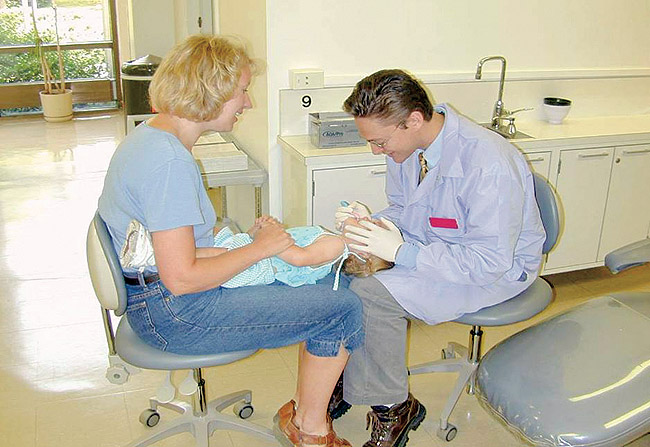 Dentists and other oral healthcare providers should receive continuing education in early pediatric dental techniques. The ABCD program’s education component is certified by the University of Washington’s pediatric dentistry staff. In the initial training, the dental practitioner is taught the lap-to-lap examination procedure (discussed below) as a better method than using a dental chair for examining very young children.16