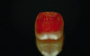 Figure 8 and Figure 9. Etching a lithium-disilicate crown with 5% HF for 20 seconds (Figure 8), and applying silane (Figure 9) to the lithium-disilicate crown.