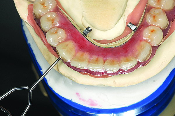 Steps for the final prosthetic protocol are as follows: First, assess the implants for integration, and check the abutments and tighten them as necessary, per the manufacturer’s instructions. Finalize the esthetics and occlusion of the provisional prostheses, taking note of any modifications that may be needed. Then, the final impressions can be made with a heavy or rigid VPS material with splinted impression copings as per the provisional protocol. The final impressions can then be verified using verification jigs to ensure accuracy and complete passive fit of the models (Figure 7).