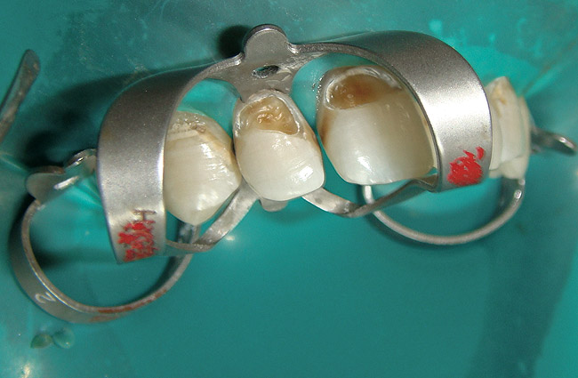 The use of a copper band could negate the need to remake an entire full-arch impression just to capture one or two preparations.6 On the basis of wound healing and gingival recession, the metal band with impression material is shown to be better than either surgery or retraction cord. Disadvantages of this technique include the amount of time required to fit and adapt the band, the difficulty in removing the modeling compound-filled band from undercuts, and the trauma to tissue caused by the band itself.4