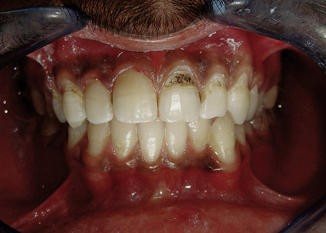 Ferric sulfate: Ferric sulfate provides good hemostasis on exposed connective tissue. This astringent is provided in solution form only, generally in the concentration of 13% to 20%. Solutions of ferric sulfate above 15% are very acidic and can cause significant tissue irritation and postoperative root sensitivity. The recommended packing time for cord dipped in ferric sulfate solution is 1 to 3 minutes. When tissues are hemorrhaging, the solution should be rubbed into the bleeding areas with an applicator (dento-infusor) or a soaked cotton pellet. Ferric sulfate can modify the accuracy of surface detail reproduction during impressions because it disturbs the setting reaction of polyvinyl siloxanes. Therefore, all traces of medicament should be carefully removed from the tissues before the impressions are recorded.19 Due to its iron content, ferric sulfate stains gingival tissues a yellow-brown to black color for several days after being used as a retraction agent.20 The esthetics of the anterior all-ceramic crowns may also be compromised due to the use of ferric sulfate since it has shown to produce internalized discoloration of the tooth structure.21