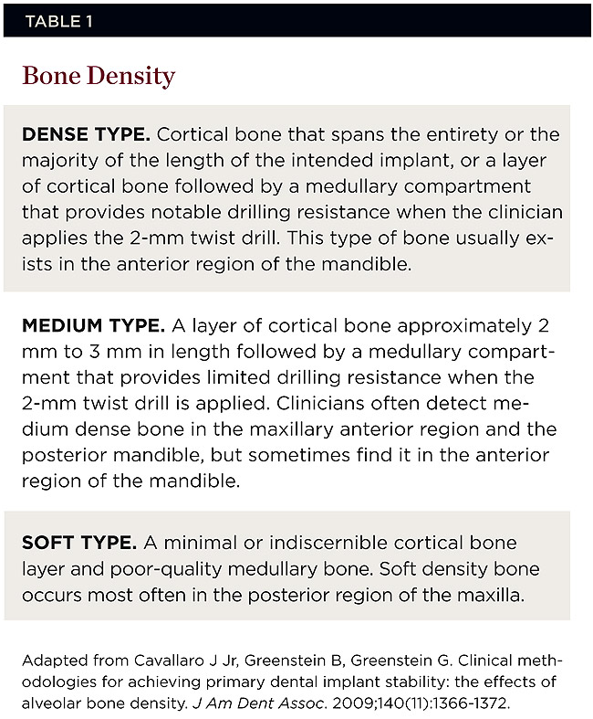 7. Cavallaro J Jr, Greenstein B, Greenstein G. Clinical methodologies for achieving primary dental implant stability: the effects of alveolar bone density. J Am Dent Assoc. 2009;140(11):1366-1372.